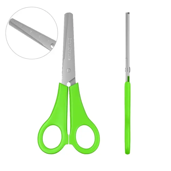 Tijeras con hojas de acero inoxidable de alta calidad y puntas redondeadas seguras. Una regla en las hojas proporciona precisión de corte.