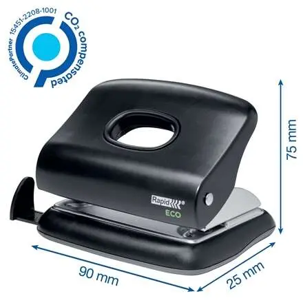 Rapid Eco Taladro Perforador - Perfora hasta 20 Hojas - Facil Vaciado - Punzones 5.5mm - Fabricado con un 74% de Plastico Recicl