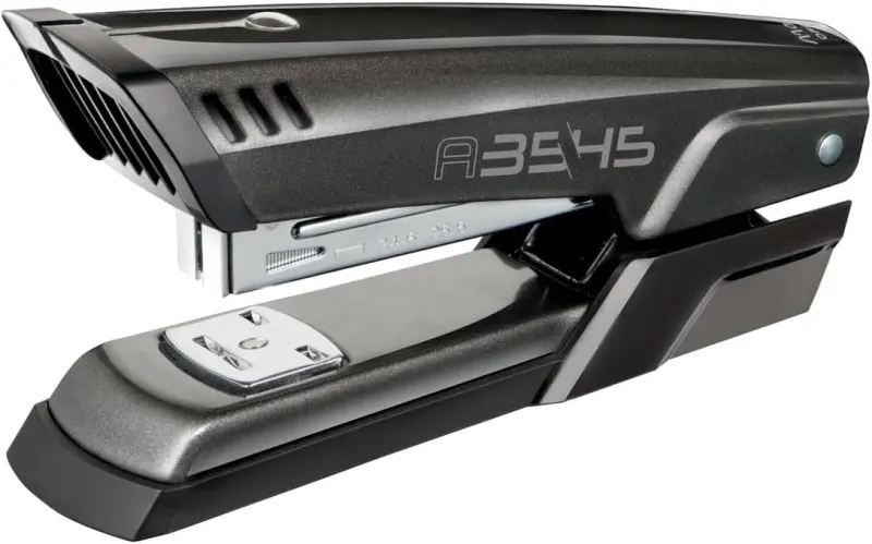 La grapadora cuenta con triple función: grapado, punteado y clavado. Tiene un mecanismo anti-bloqueo de grapas, una base con depósito de grapas, y una regleta tope de papel para formatos A4, A5 y A6. Está hecha de metal y tiene una capacidad de 100 grapas 24/6 a 140 26/6.