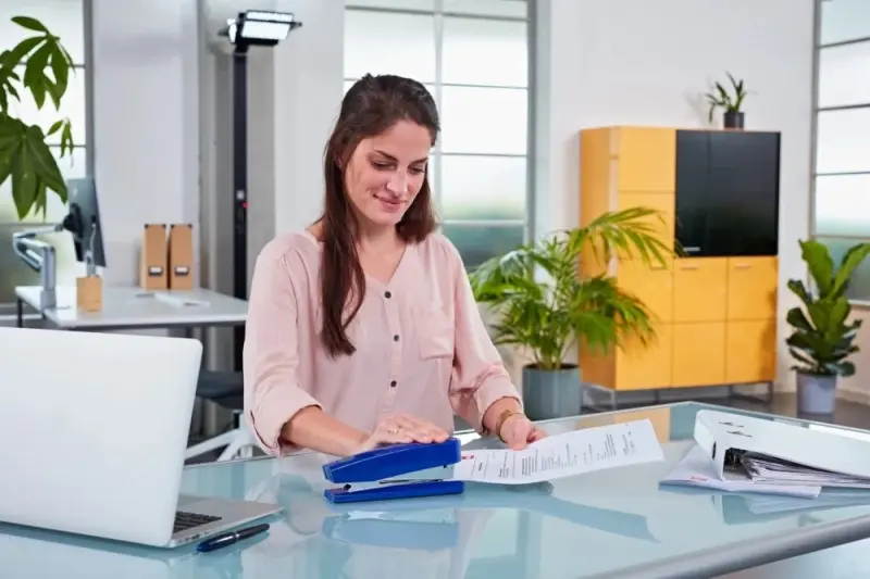 -Con función automática para grapar sin esfuerzo hasta 8 hojas, con un solo dedo y una mínima presión.