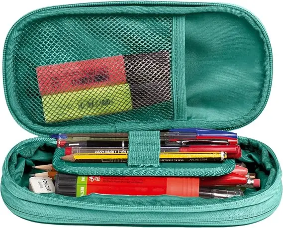 El estuche escolar Oxford B-MAX es un portatodo expandible diseñado para estudiantes, fabricado en poliéster reciclado (RPET) con un diseño funcional. Cuenta con un compartimento principal, bolsillo de malla, y una goma elástica funcional para acoplarlo a cuadernos. Sus medidas son 22,5 x 11,5 cm, expandible de 2 a 6 cm de ancho.