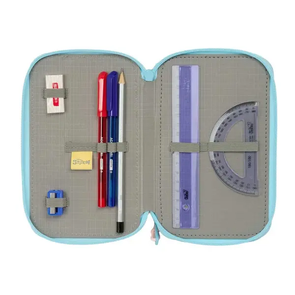 Safta Stitch Ohana Plumier de 3 Pisos - 37 Piezas - 1.3L - Goma - Lapiz - Boligrafos - Sacapuntas - Reglas - 16 Colores - 14 Rot