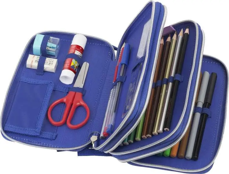 El estuche triple diseño dinosaurio se subdivide en 3 secciones e incluye varios productos.