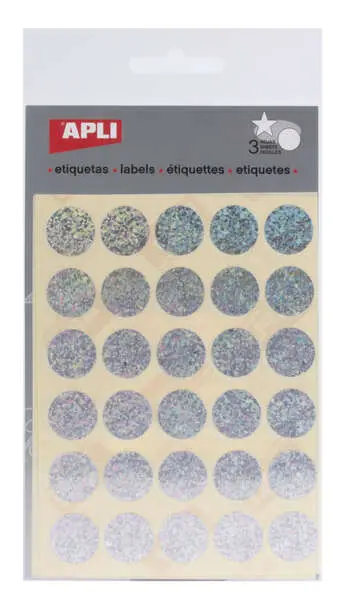 Apli Gomets Redondos Holograficos Ø 20mm - Adhesivo Permanente - 90 Gomets en 3 Hojas - Desarrollo de Habilidades y Creatividad