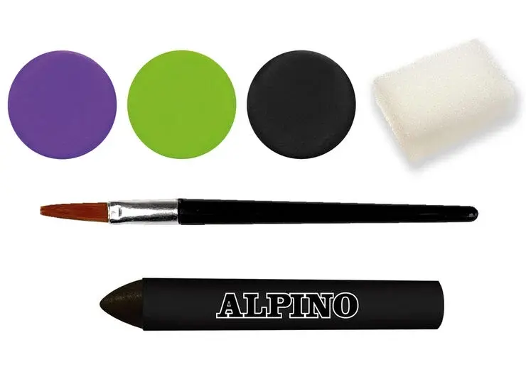 Alpino Aqua Make Up Set de Caracterizacion de Bruja - 3 Polveras + Cera Negra + Pincel + Esponja