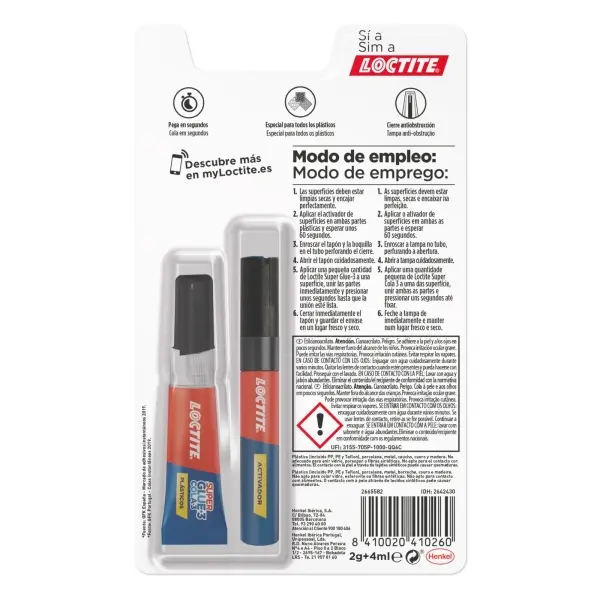 -Este pegamento Loctite es ideal para pegar todo tipo de superficies plásticas, como polietileno y polipropileno, además de otros materiales*