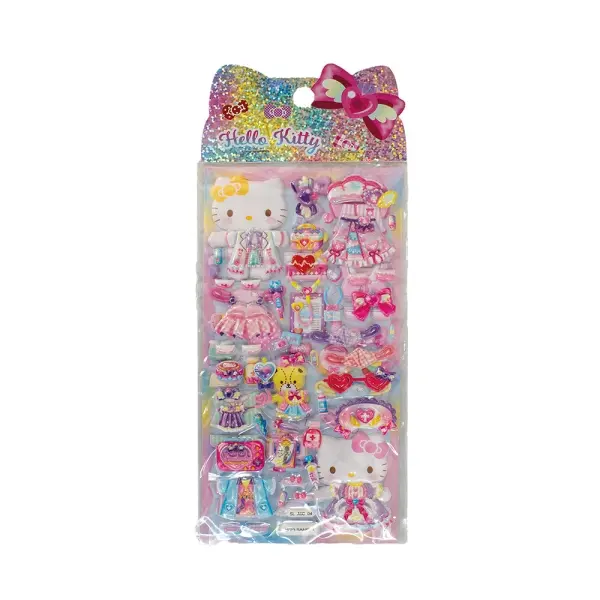 Este blíster contiene hojas de stickers puffy que presentan a la adorable Hello Kitty junto con una variedad de ropa kawaii para vestirla. Los niños pueden disfrutar creando divertidos atuendos para Hello Kitty y decorar sus manualidades de una manera única y encantadora.