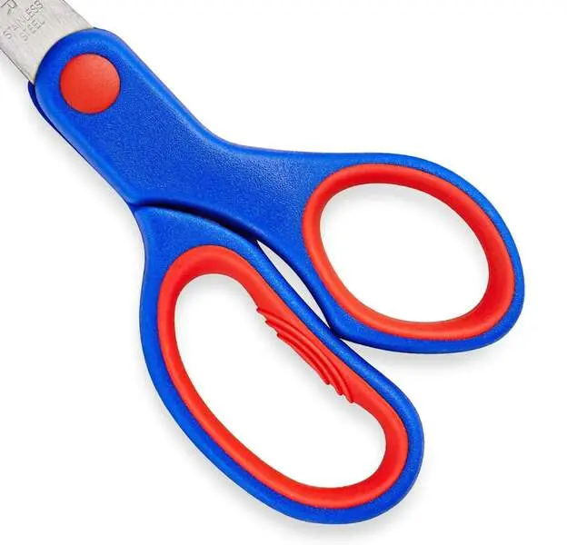 Tijeras escolares de seguridad, agarre ergonómico suave, cuchillas romas antioxidación, longitud 14 cm.