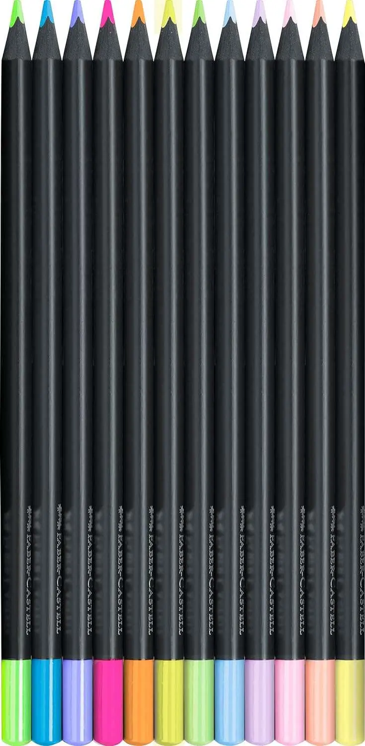 Faber-Castell Black Edition Pack de 12 Lapices de Colores Neon+Pastel - Mina Supersuave - Madera Negra - Ideales para Dibujo sob