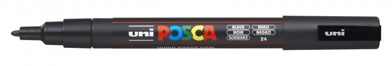 Posca PC-3M Marcador de Pintura - Punta de Poliester Conica 0.9-1.3mm - Tinta Base al Agua - Resistente a la Luz - Color Negro