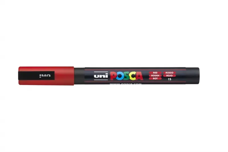 Posca PC-3M Marcador de Pintura - Punta Conica 0.9-1.3mm - Tinta Base al Agua - Resistente a la Luz - No Permanente - Color Rojo