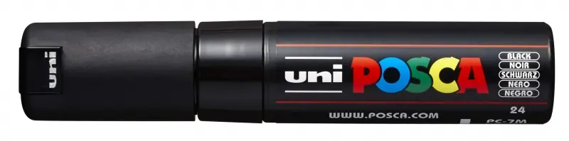 Posca PC-7M Marcador de Pintura - Punta de Bala 4.5-5.5mm - Tinta Base al Agua - Resistente a la Luz - Color Negro