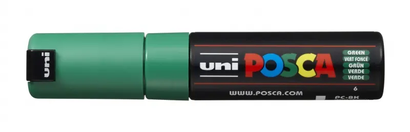 Posca PC-8K Marcador de Pintura Base al Agua - Punta Biselada Acrilica 8mm - Linea Gruesa - Resistente a la Luz - Color Verde