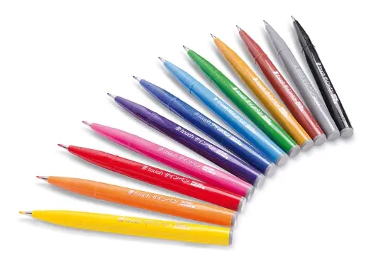 Pentel Brush Sing Pen Pack de 12 Rotuladores con Punta de Pincel - Lineas Finas o Gruesas dependiendo de la Presion - Fabricados