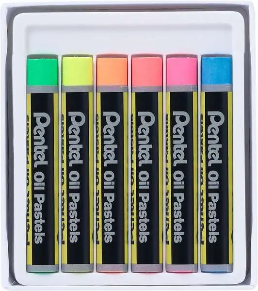 Pentel Oil Pastels Pack de 6 Pasteles Oleo Fluorescentes - Blandos, Cremosos y de Secado Lento - Colores Fluorescentes Surtidos