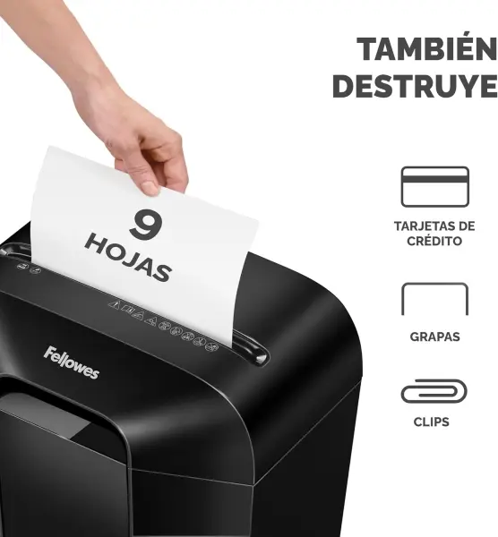 -También destruye grapas, clips y tarjetas de crédito.