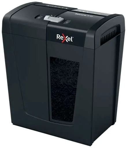 La gama de destructoras de papel Secure de Rexel es ideal para destruir sus documentos personales e información confidencial en casa. La máquina destructora Secure X10 destruye hasta 10 hojas de papel A4 (80 grs) de una sola vez a través de la ranura de alimentación manual en partículas de nivel de seguridad P-4 (4x40 mm). Esta pequeña destructora de corte en partículas es perfecta para usar como destructora doméstica en una oficina en casa, o también es una destructora de oficina personal ideal que se adapta cómodamente debajo de un escritorio debido a su tamaño compacto y adecuado. Diseñada para un uso de esporádico a moderado con una capacidad de papelera de 14 litros.