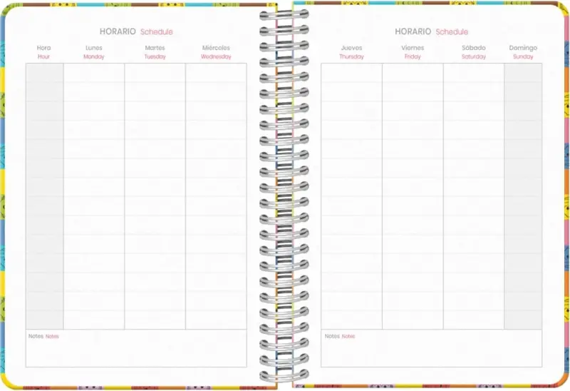 Dohe Playmobil Unite As One Agenda escolar semana vista. Todos los días de la semana en dos hojas. La cubierta está fabricada en cartón forrado con papel impreso a todo color y plastificado brillo con puntas redondeadas. Guardas impresas. Una agenda con wire’o metálico de color blanco y cierre con goma elástica plana en color rojo.