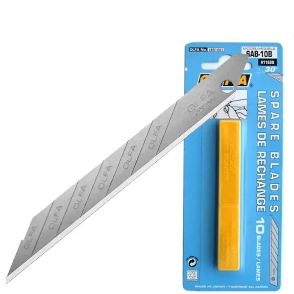 Olfa Pack de 10 Cuchillas para Cuters - Ancho 9mm, Largo 74mm - 8 Segmentos