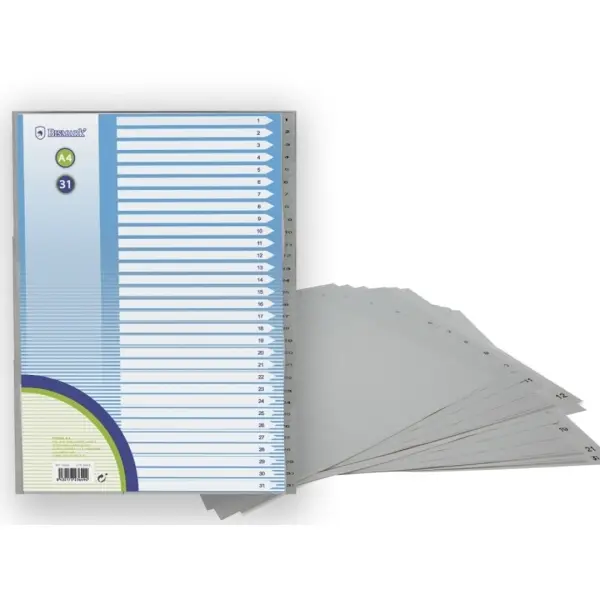 Bismark Indice Numerico con Pestañas del 1 al 31 - Multitaladro - Formato A4 - Fabricados en Polipropileno - Color Gris