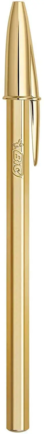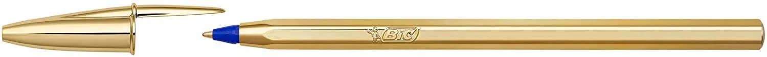 Bic Cristal Shine Boligrafo de Bola - Punta Media de 1.0mm - Tinta con Base de Aceite - Elegante Cuerpo Dorado - Color Azul