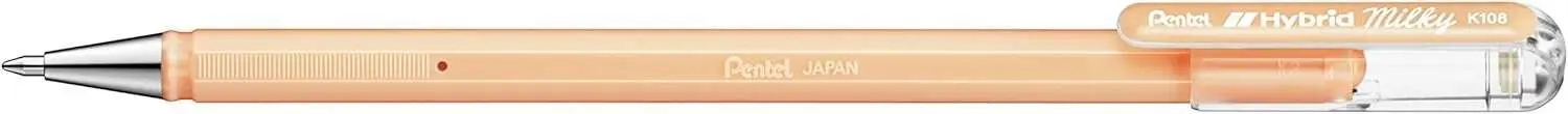 Pentel Hybrid Milky Boligrafo de Bola - Punta Fina 0.8mm - Trazo 0.4mm - Tinta de Gel Opaca - Color Naranja Pastel