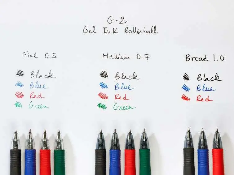 El rotulador G2 de Pilot es un bolígrafo de tinta de gel con una punta de bola redonda y una bola de carburo de tungsteno rígida y resistente.
