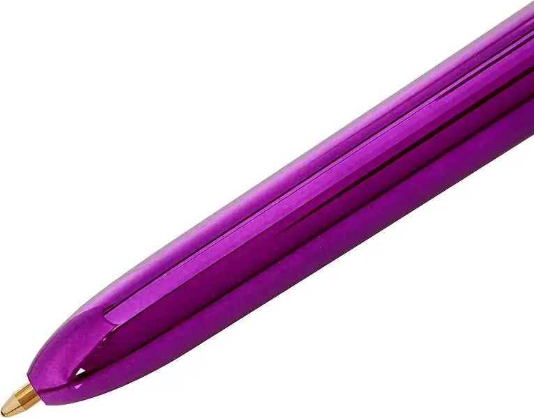 Bic 4 Colours Shine Boligrafo de Bola Retractil - Punta de 1mm - Trazo de 0.4mm - Tinta con Base de Aceite - Cuerpo Morado Metal