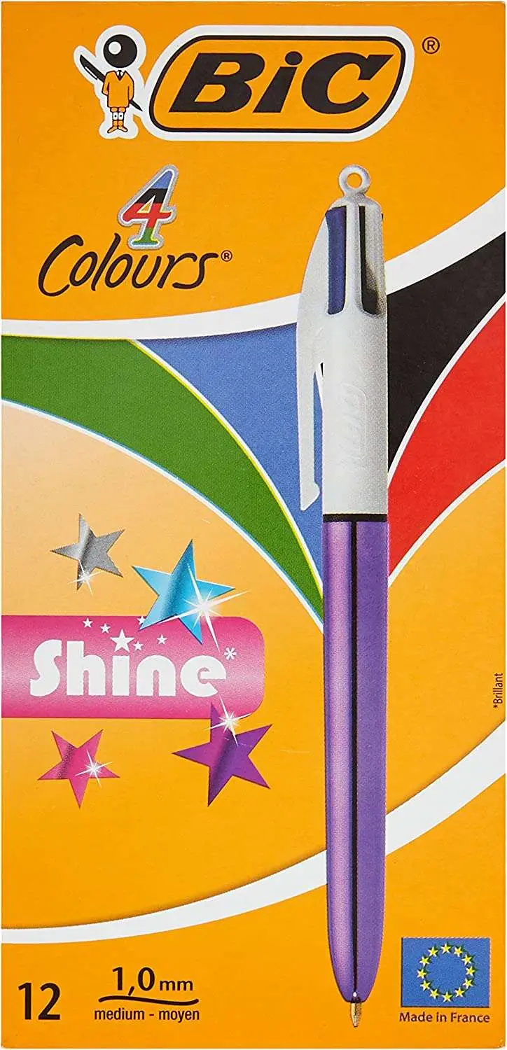 El boli BIC 4 Colores Shine aguanta el paso del tiempo. Cada recambio escribe una media de 2 km, lo que suma un total de 8 km. Fabricado en Europa, el boli BIC 4 Colores Shine se caracteriza por su inigualable calidad y está disponible en 5 versiones metalizadas.