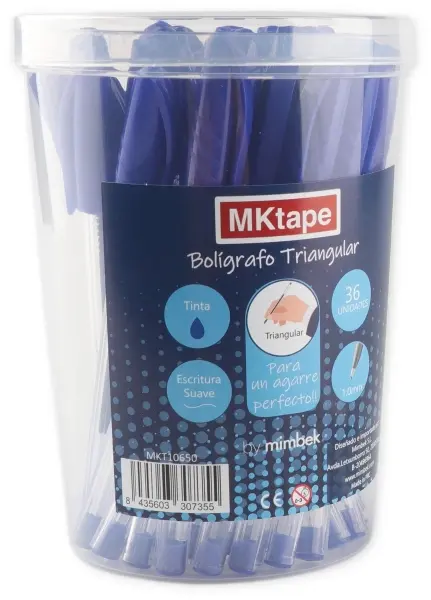MKtape Pack de 36 Boligrafos Triangulares de Bola - Punta Redonda de 1.0mm - Escritura Suave - Color Azul