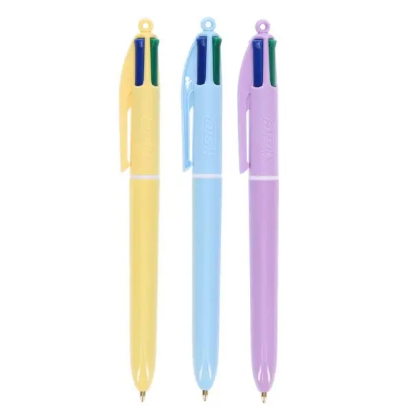 Clásicos bolígrafos BIC 4 Colores con modernos diseños pastel disponibles en 3 colores diferentes. Consíguelos todos y exprésate con diseños sofisticados.