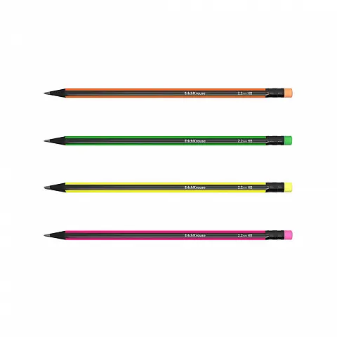 Erichkrause Vivo HB Pack de 4 Lapices de Grafito Triangular HB con Goma de Borrar del Color del Lapiz - Madera Seleccionada - Re
