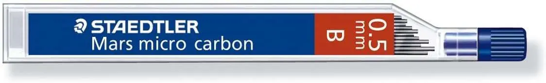 Staedtler Mars Micro Carbon 250 Tubo de 12 Minas de Grafito - Dureza B - Trazo 0.5mm - Alta Resistencia
