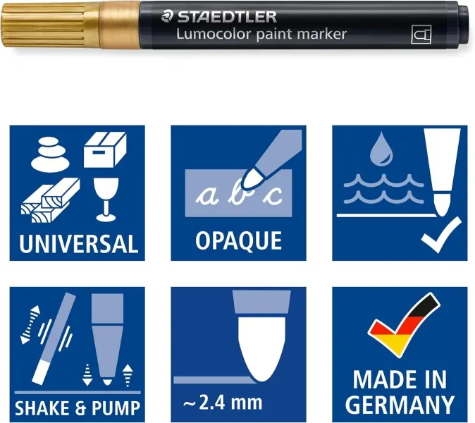 Staedtler Lumocolor 349 Marcador Acrilico Permanente - Trazo 2.4 mm Aprox - Tinta Base de Agua - Color Oro