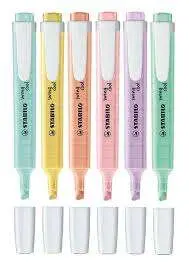 Stabilo Swing Cool Pastel Pack de 6 Marcadores Fluorescentes - Cuerpo Plano - Punta Biselada - Trazo entre 1 y 4mm - Tinta con B
