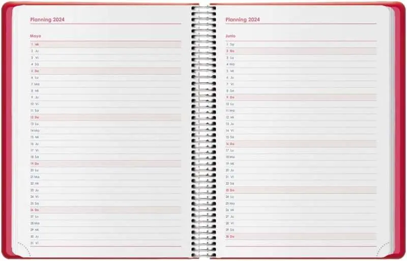 Dohe Denver Agenda Anual - Dia Pagina - Sabado y Domingo misma Pagina - Cierre con Goma Elastica - Tamaño 15x21cm - Color Rojo