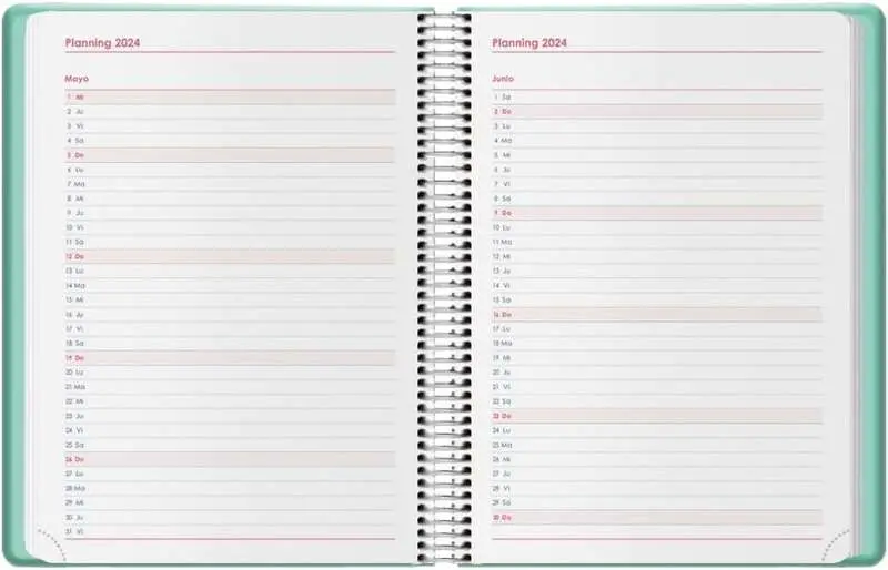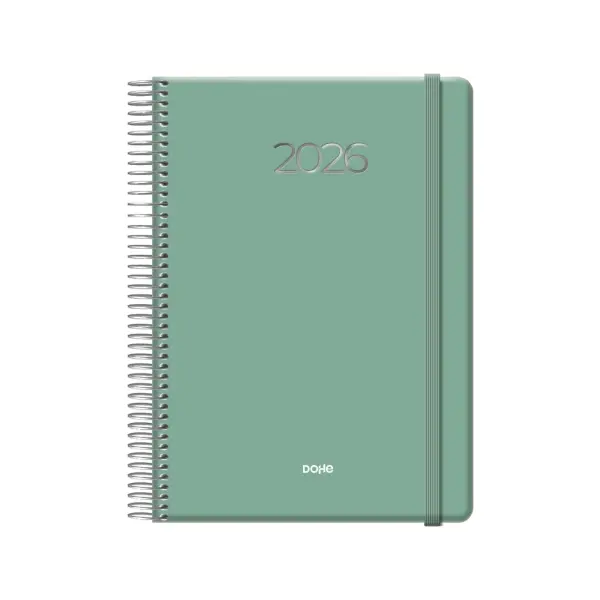 Dohe Denver Agenda Anual - Dia Pagina - Sabado y Domingo misma Pagina - Cierre con Goma Elastica - Tamaño 15x21cm - Color Verde