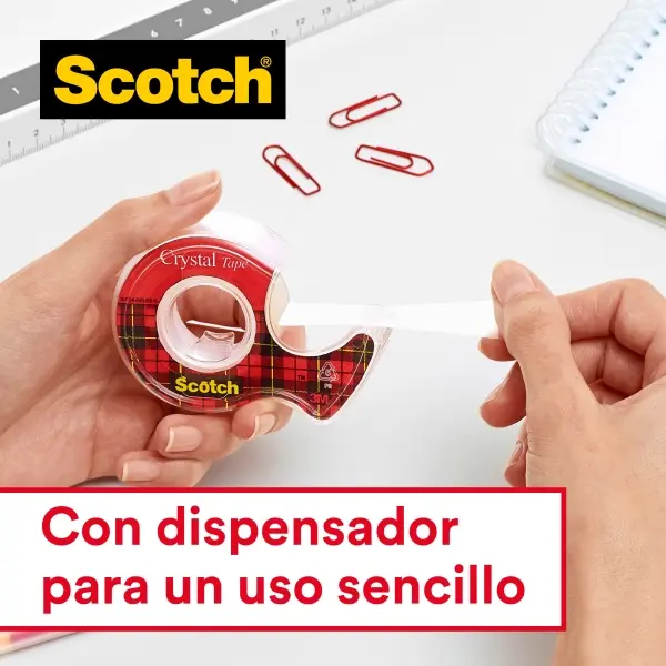La cinta Scotch® Crystal supertransparente es una solución adhesiva versátil diseñada para ofrecer un acabado brillante y completamente transparente en cada aplicación. Ideal para una variedad de tareas diarias, esta cinta combina durabilidad y facilidad de uso, garantizando resultados profesionales en cada proyecto.