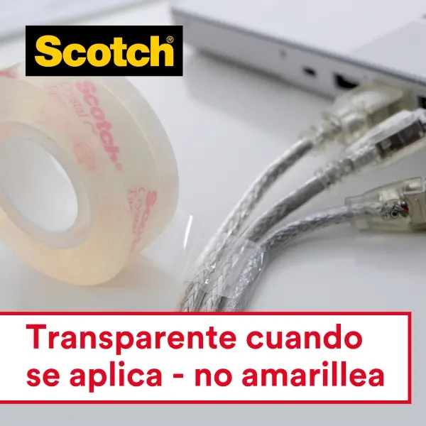 La cinta Scotch® Crystal supertransparente es una cinta adhesiva multiuso que ofrece un acabado brillante y transparente cuando se aplica y tiene una aplicación duradera. La cinta adhesiva transparente ofrece una adherencia instantánea y permanente para una gran variedad de tareas de uso general, por ejemplo, empaquetar, sellar y reparar. Está disponible en una gran variedad de anchuras y longitudes y es compatible con una amplia gama de dispensadores de cinta.